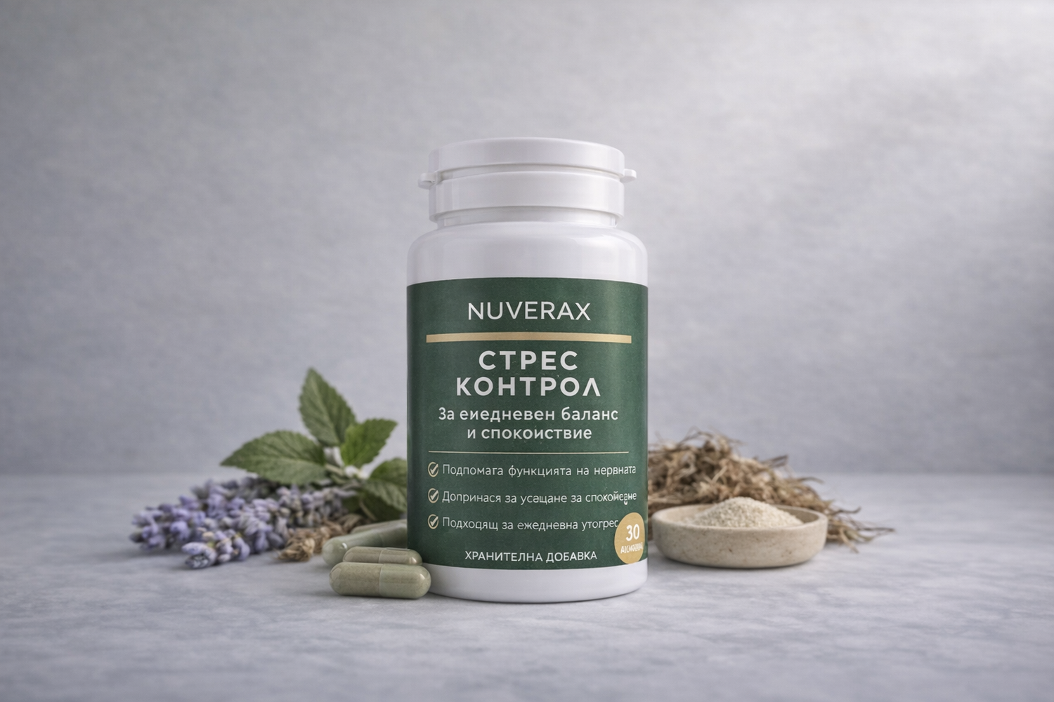 Nuverax – Стрес Контрол е хранителна добавка, създадена да подпомага спокойствието, емоционалния баланс и качеството на съня в ежедневието.